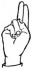 На ћирилици написано БЛАЖА ГАГИЋ састоји се из 10 слова [?]. Исписано ћириличном једноручном азбуком за глувонеме: